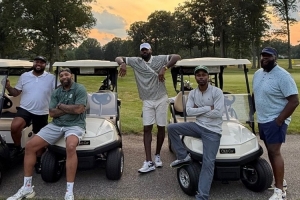 體育資訊7月4日訊 今日,湖人前鋒詹姆斯更新Instagram Story,轉(zhuǎn)發(fā)他近日在家鄉(xiāng)阿克倫與兒時(shí)好友、高中隊(duì)友一同打高爾夫的合影。