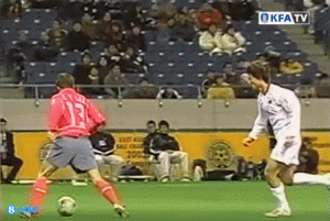 在2003年?yáng)|亞四強(qiáng)賽上,中國(guó)男足0-1不敵10人韓國(guó)。韓國(guó)在上半場(chǎng)打進(jìn)一球取得領(lǐng)先,而在比賽下半時(shí),李乙容因怒扇李毅被紅牌罰下。李乙容曾代表韓國(guó)出戰(zhàn)過(guò)2002年和2006年世界杯,打進(jìn)一球。