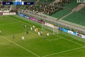 比賽第43分鐘,王剛在禁區(qū)外貢獻了一腳離譜的凌空抽射,皮球直接高高飛出轉(zhuǎn)播畫面,5秒之后才落到了看臺上。