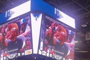 比賽期間,大屏幕曬出馬刺名宿“海軍上將”大衛(wèi)·羅賓遜來(lái)到現(xiàn)場(chǎng)看球的畫面,觀眾們報(bào)以熱烈歡呼聲。