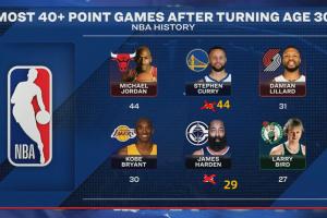 09雙雄!30歲后40+次數:庫里平喬丹!哈登差科比1場!