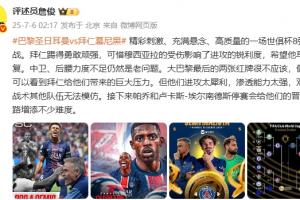 體育資訊07月06日訊 世俱杯1/4決賽,巴黎2-0淘汰拜仁,詹俊發(fā)文點(diǎn)評(píng)了本場(chǎng)比賽。