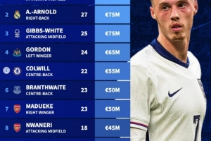 德轉(zhuǎn)列缺席本期英格蘭名單身價榜:帕爾默居首,阿諾德次席