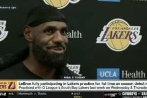 體育資訊11月18日訊 今日,湖人前鋒詹姆斯在訓(xùn)練后接受了采訪。