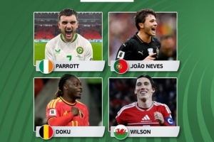 體育資訊11月19日訊 歐洲世預(yù)賽最后一輪比賽戰(zhàn)罷,歐足聯(lián)官方公布了本輪最佳球員候選名單。