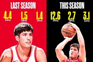 謝潑德本季場均12.6分&三分命中率47.8% 上賽季4.4分&三分33.8%