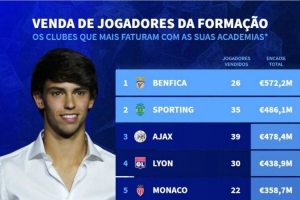 本世紀(jì)出售青訓(xùn)球員收入榜:本菲卡、葡萄牙體育、阿賈克斯前三