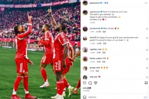 體育資訊11月23日訊 拜仁在本輪德甲讓二追六、成功逆轉(zhuǎn)弗賴堡,于帕梅卡諾也斬獲進球。