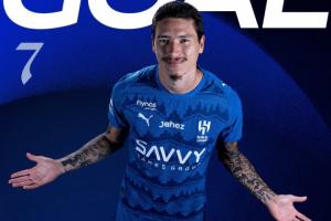 努涅斯上賽季效力英超利物浦,因為紅軍計劃在夏窗豪購新前鋒(?;倏?伊薩克),努涅斯自然也就沒有了位置,被早早出售到沙特,轉(zhuǎn)會費5300萬歐+浮動。努涅斯加盟新月后效率不錯,盡管受到傷病影響,各項賽事9場仍有5球2助的貢獻。