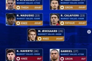 體育資訊11月23日訊 阿森納將在本輪英超焦點戰(zhàn)對陣熱刺,《轉(zhuǎn)會市場》統(tǒng)計顯示隊內(nèi)最多可能有8人無法出戰(zhàn)。