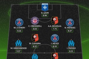 體育資訊11月24日訊 法甲第13輪聯(lián)賽已經(jīng)完賽,whoscored也根據(jù)評(píng)分列出了本輪最佳陣容,巴黎、馬賽和雷恩各3將入圍。