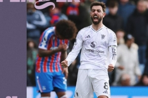 本場比賽B費兩次助攻隊友破門,幫助球隊完成逆轉(zhuǎn),他也當(dāng)選曼聯(lián)官方評選出的本場隊內(nèi)最佳球員。