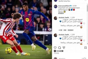 拉什福德社媒曬出比賽照片,并寫(xiě)道:“重要的勝利,出色的團(tuán)隊(duì)表現(xiàn)。加油!”