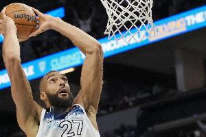 第一節(jié),森林狼中鋒戈貝爾高效發(fā)揮,打滿12分鐘3投3中,罰球4中4拿到10分6籃板1助攻1搶斷,正負(fù)值+6。