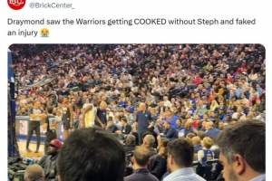 美媒BrickCenter嘲諷道:“追夢看到勇士在沒有庫里的情況下被打爆了,所以他假裝自己受傷了。”