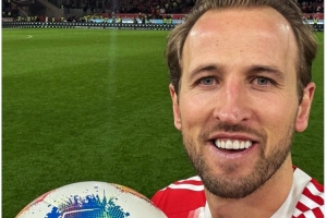 拜仁官推也在賽后曬出凱恩與比賽用球的自拍照,配文寫道:“76場德甲第10次帽子戲法,太瘋狂了。”