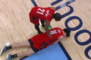 GIF-楊瀚森被打到面部倒地不起