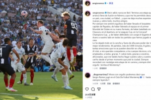 拉莫斯社媒告別蒙特雷:34場(chǎng)打進(jìn)8球,我會(huì)永遠(yuǎn)懷念這段職業(yè)生涯
