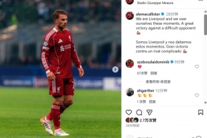 麥卡利斯特社媒鼓勵球隊:我們是利物浦,值得這樣的勝利????