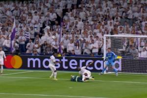 VAR介入,主裁觀看回放后判罰點球,并對呂迪格出示黃牌!哈蘭德點射打進!此時比分變?yōu)槁?-1皇馬!