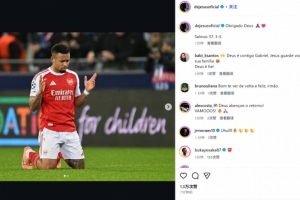 復(fù)出擊中門(mén)框!阿森納前鋒熱蘇斯社媒曬比賽照紀(jì)念:感謝上帝