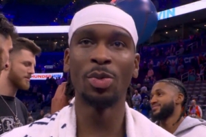 體育資訊12月11日訊 NBA杯1/4決賽,雷霆138-89大勝太陽晉級。賽后亞歷山大接受了采訪。