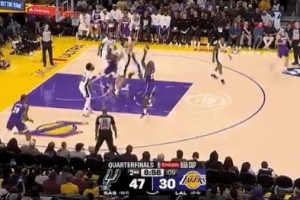 上一篇: 說(shuō)我不防守???怂箵寯嘣噲D上籃 詹姆斯回追左手釘板大帽!