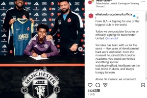 體育資訊12月12日訊 曼聯(lián)官方宣布簽下13歲中衛(wèi)索克拉蒂斯(Socrates)。
