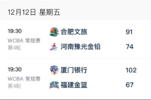 2025-2026賽季W(wǎng)CBA常規(guī)賽今日精彩繼續(xù),其中合肥女籃在主場成功復(fù)仇河南女籃,廈門連續(xù)大勝贏下福建德比。