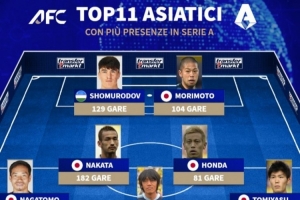 意甲出場(chǎng)最多的亞洲球員11人陣: