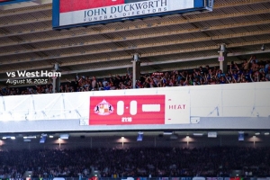 本場(chǎng)比賽桑德蘭主場(chǎng)觀眾席上方的比分牌上并未展示出紐卡的隊(duì)徽,而僅僅是以英文visitors(客隊(duì))替代。