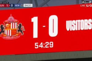 死敵!桑德蘭主場(chǎng)比分牌上沒(méi)有紐卡的隊(duì)名和隊(duì)徽,僅以客隊(duì)標(biāo)注