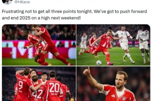 本場(chǎng)比賽凱恩點(diǎn)射破門,賽后他在社媒鼓勵(lì)球隊(duì)寫道:“很失望今晚未能全取三分,我們必須全力以赴并在下周比賽中為今年完美收官?!?/p>