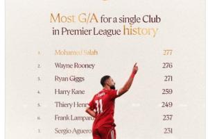 何意?薩拉赫社媒曬英超歷史單一俱樂部參與進球榜:法老277球第1