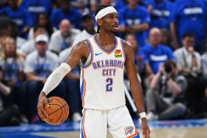 賽后頒獎(jiǎng)典禮,亞歷山大拿下全票FMVP,單賽季包攬得分王+一陣+常規(guī)賽MVP+西部決賽MVP+總決賽MVP。