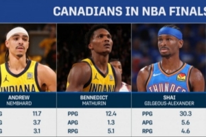 四位加拿大球員總決賽表現(xiàn):SGA當(dāng)選FMVP 內(nèi)姆哈德馬瑟林得分上雙