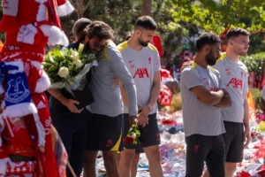 體育資訊7月12日訊 利物浦全隊(duì)及工作人員在安菲爾德向若塔和安德烈-席爾瓦表示哀悼,與兩位兄弟的家人一同緬懷。