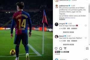 托雷社媒曬出身穿巴薩球衣的照片,并寫道:“職業(yè)足球生涯首場比賽、首個進球、首個冠軍,與最優(yōu)秀的球員并肩作戰(zhàn)。第一次的經(jīng)歷永遠難以忘懷,謝謝你,巴薩?!?/p>