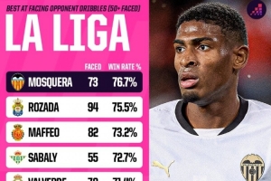 Opta指出,莫斯克拉是西甲阻止對(duì)手過(guò)人成功率最高的球員,對(duì)手73次嘗試過(guò)掉他,其中76.7%的過(guò)人被他阻止,在嘗試阻止對(duì)手過(guò)人次數(shù)50+的西甲球員中,他的成功率最高。