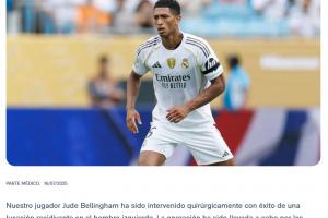 體育資訊07月16日訊 皇馬官方消息,球隊中場貝林厄姆今天接受了肩膀手術(shù),據(jù)報道,貝林厄姆預計10-12周之后復出。