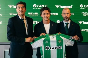 體育資訊7月22日訊 今天,貝蒂斯俱樂部正式宣布里克爾梅成為球隊的新成員,他與俱樂部主席安赫爾-哈羅和體育總監(jiān)曼努-法哈多一起亮相發(fā)布會。