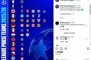以下為鎖定2025-26賽季歐冠資格的29隊(duì)名單: