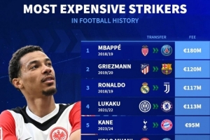 體育資訊7月24日訊 德國轉(zhuǎn)會市場統(tǒng)計了足壇歷史前鋒(中鋒)的轉(zhuǎn)會價格,并列出榜單,從法蘭克福轉(zhuǎn)會利物浦的埃基蒂克排名并列第5位。