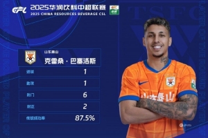 本場比賽,克雷桑先是在第22分鐘助攻澤卡破門,隨后又在第30分鐘擴大比分。憑借克雷桑的傳射建功,泰山隊最終取得一場酣暢的大勝。