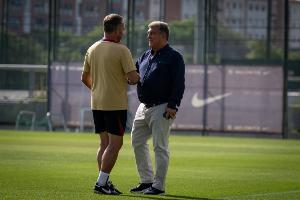 訓(xùn)練在當(dāng)?shù)貢r(shí)間下午6點(diǎn)開始,巴薩主席拉波爾塔到達(dá)現(xiàn)場(chǎng),陪同他的還有第一副主席拉法-尤斯特、高管恩里克-馬西普和亞歷杭德羅-埃切瓦里亞。