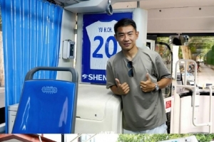 體育資訊7月29日訊 今日,記者楊翼更新社媒,曬出了于漢超與申花主題巴士合影,照片中于漢超與自己的球衣號一同合影。