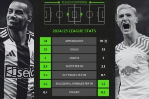 體育資訊7月30日訊 在迪亞斯官宣加盟拜仁后,伊薩克、塞斯科的潛在連鎖轉(zhuǎn)會也正在進行中。whoscored也對比了兩人的上賽季聯(lián)賽關(guān)鍵數(shù)據(jù):