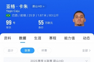 意向中的引援人選亞格則是中鋒位置的替代者,將在523戰(zhàn)術(shù)體系中擔(dān)任進(jìn)攻支點,如果與浙江牽手成功,亞格將會以租借的方式加盟,租期半年。身高1.86米、體重82公斤的亞格2023年租借到K聯(lián)賽江原FC,去年7月賽季中途轉(zhuǎn)會蔚山HD,以13個進(jìn)球成為K聯(lián)賽銅靴。