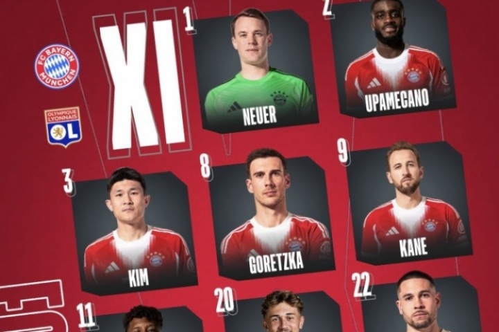 拜仁首發(fā):1-諾伊爾、2-于帕梅卡諾、3-金玟哉、22-格雷羅、23-博伊、46-卡爾、8-格雷茨卡、20-比紹夫、24-萬納、11-科曼、9-凱恩