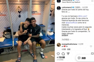 體育資訊8月3日訊 不久前,熱刺后衛(wèi)羅梅羅更新社交媒體,告別了完成熱刺生涯最后一賽的孫興慜。